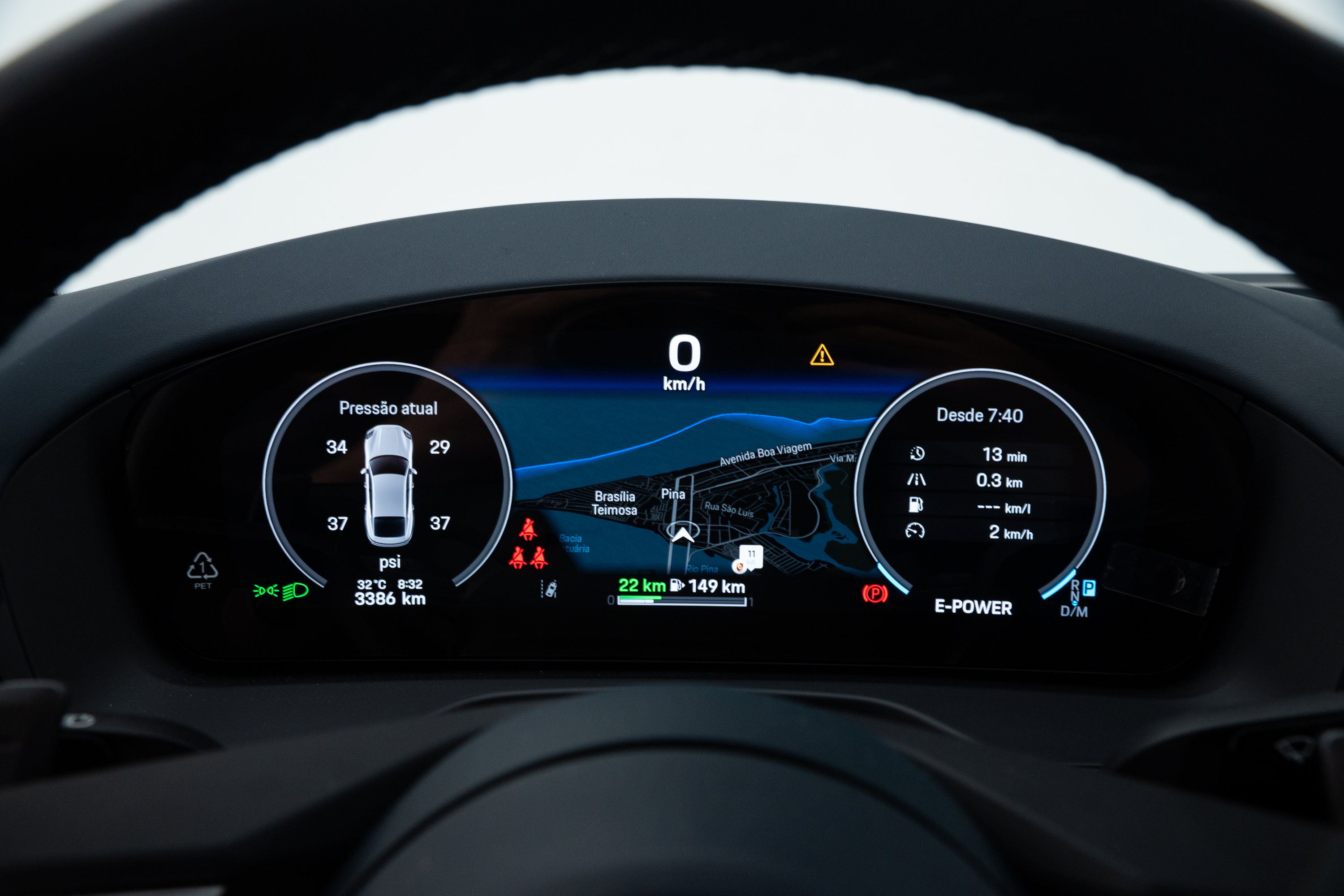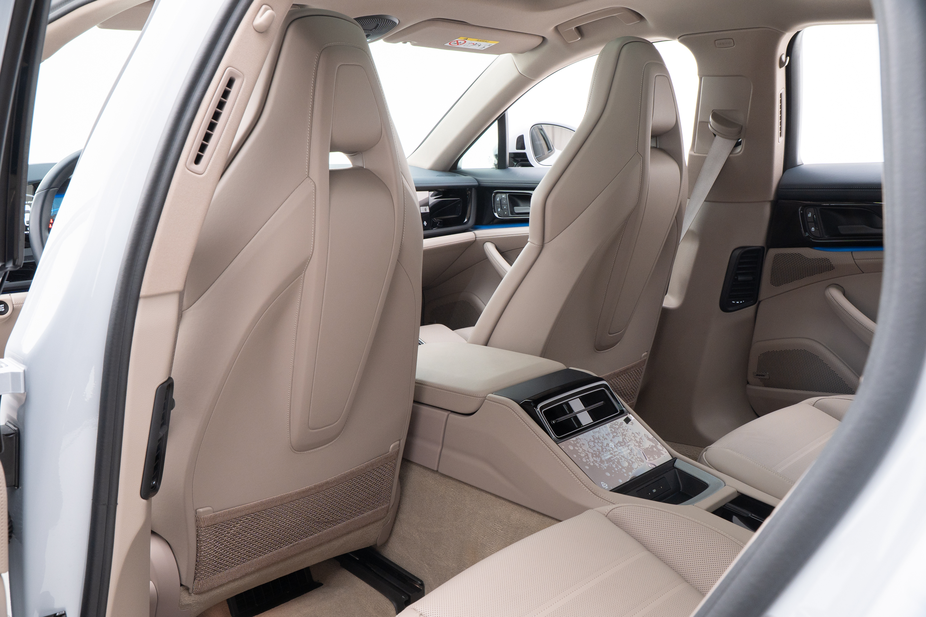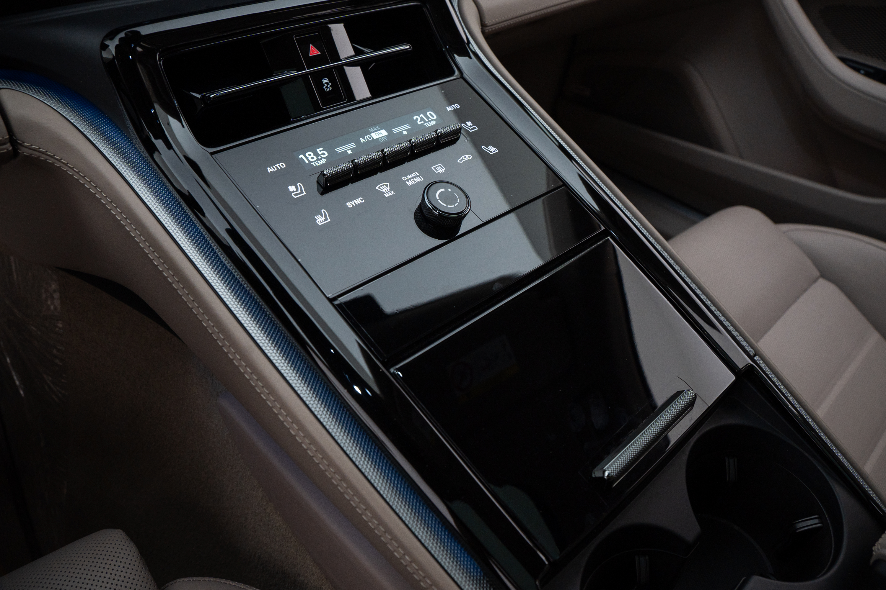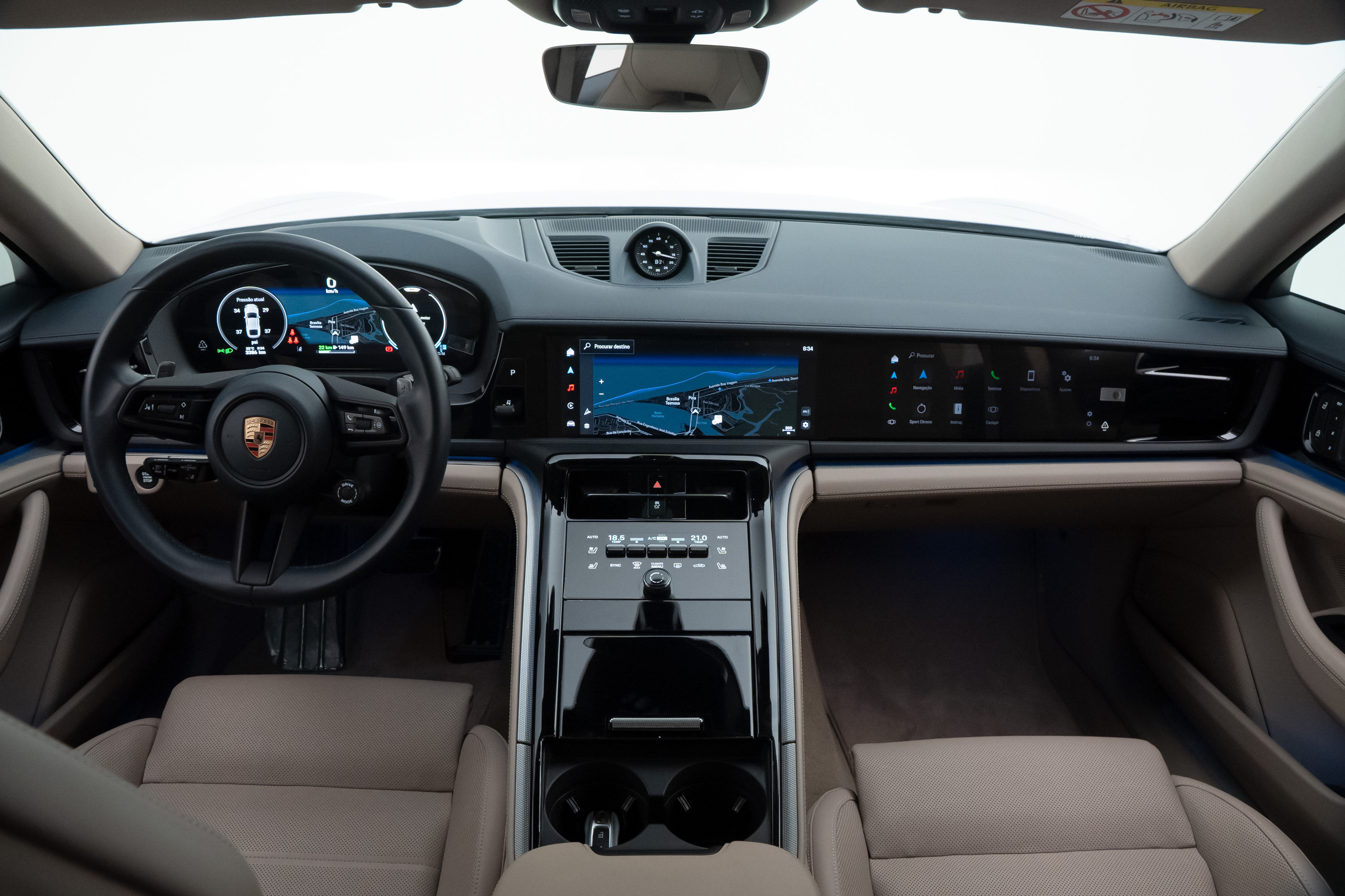 Interior em couro bicolor Darknightblue/Chalk Beige,com acabamento liso