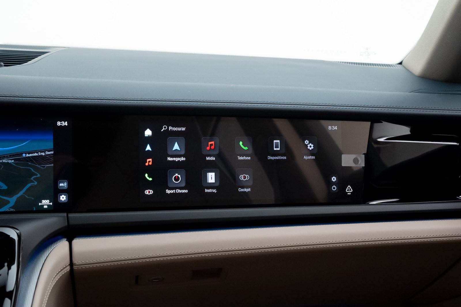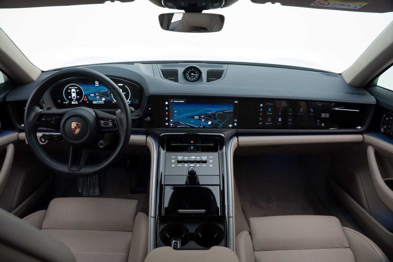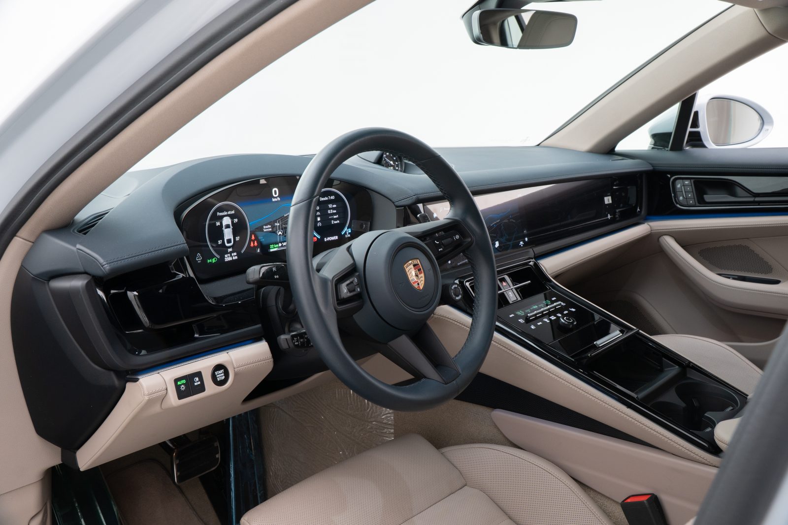 - Interior em couro bicolor Darknightblue/Chalk Beige,com acabamento liso