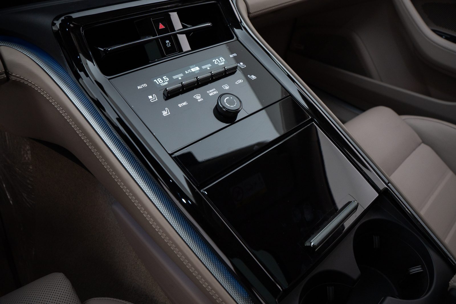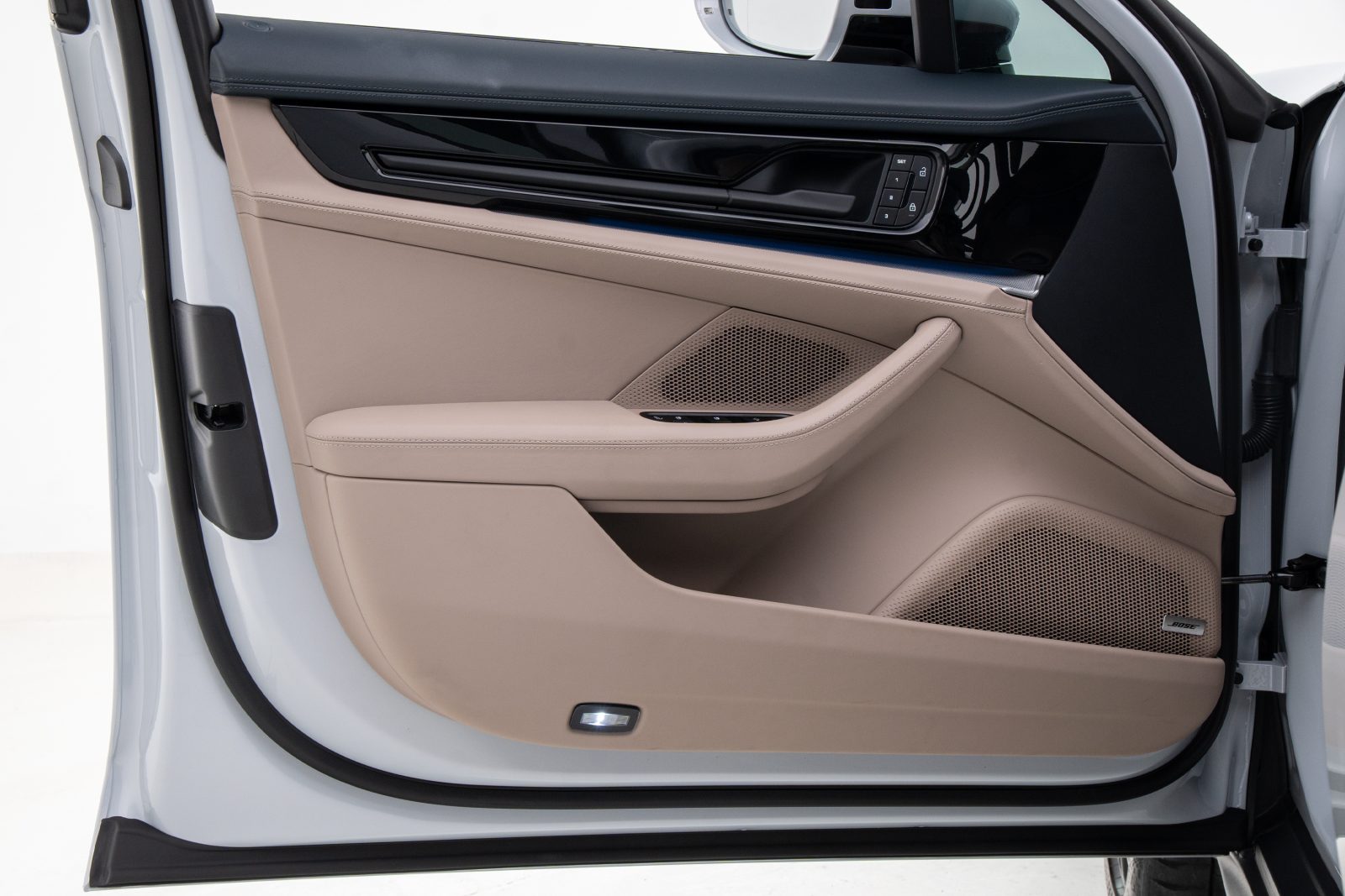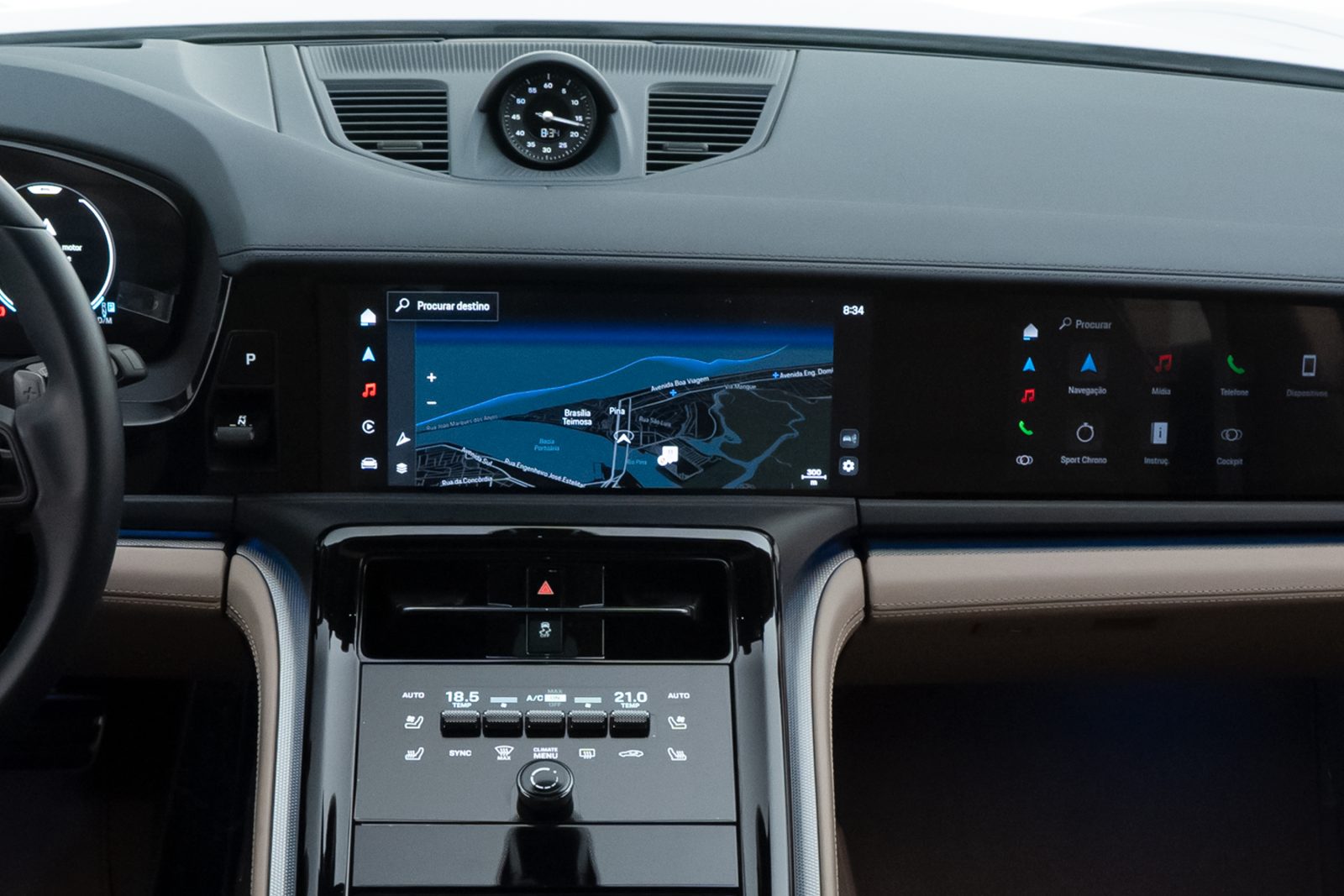 - Interior em couro bicolor Darknightblue/Chalk Beige,com acabamento liso
